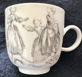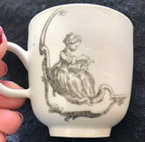 SOLD 18th Century Bristol Porcelain Coffee Cup Transfer-Printed after Robert Hancock with a version of "Blind Man's Buff' and "Girl with Doll."