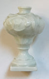 The pot-bellied vase tilts a little towards one side, a charming feature.