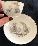 18th Century Worcester Porcelain Teabowl and Saucer, Singing Lesson Print.