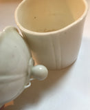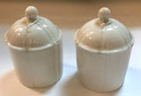 A pair, and a single, all of lobed, straight-sided cylindrical form, with domed covers and fruit-form tops.