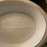 19th Century Vieux Paris Painted Soup Tureen of oval form, the waisted ankle over spreading foot, with two faux bolted handles to the sides; the domed cover with melon form knop. The handles and knop resting in and on moulded leaves, picked out with gilding, and the ribbing to the melon also gilt.