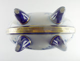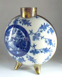 English Pinder, Bourne & Co. and Doulton Burslem Pottery Pilgrim Flask Vase, designed by Henry Slater (1868 - 1932, photo below) for Pinder Bourne and Co. which subsequently became Doulton in 1882. Slater created the delicate mesh gilding of the neck and the band to the side, as well as the feet. The gilding compliments the underglaze transfer-printed blue branches and ball motifs scattered over the surface.