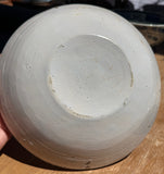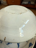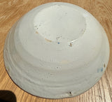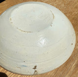 Three Dutch Delft Pancake Dish painted in blue on white, modeled as shallow bowls, painted with stylized tulips and four dots in clusters to rims, over quatrefoil foliate, floral and heart designs, forming a compass. Not marked. Circa 1810. Approximate dimensions: 2 1/4” H. X 9 1/4” Diameter. Condition: Flaking of glaze off the rim, typical of this ware. Minor crazing to enamels. There are three plates available: one of the three has a 2” cracker issuing a longer, crawling T shaped crack. Each with some surface wear and scratches.