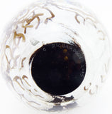 1/3" long very light scratch of white to exterior surface 2" from base. The underside has some light scratches.