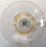 American (Pennsylvania) H.C. Fry Glass Set of 16 Art Glass Wine Glasses with Gold Threads, each of the bowls blown with controlled air bubbles trapped in the surface, and with wrapped gold threads near the bowl base, on a shaped long stem.