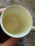 The cup 3” H., 4” Diameter including handle. 2 3/4” Diameter without handle.