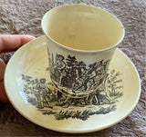18th Century English Creamware Transfer Printed Teacup & Saucer, attributed to Wedgwood.
