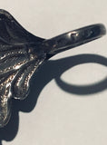 Fine Sterling Silver Caddy Spoon by Joseph Willmore, feathered leaves design to bowl with loop handle. Marks on handle.