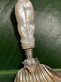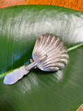 Fine Victorian Sterling Silver and Mother of Pearl Caddy Spoon by George Unite. This beautiful spoon has a gilt shell form bowl leading up to a ferrule leaf. The carved mother of pearl handle is absolutely lovely and sits well in the hand. The craftsmen of this fine work is George Unite, an incredibly skilled silversmith working in Birmingham during the 19th century. His work is exemplary and known throughout.