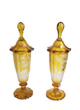 SOLD Pair of German-Czech 19th Century Bohemian Glass Covered Vases