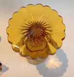 German-Czech pair of Bohemian amber-flashed cut-to-clear glass covered vases, with ten panel mold to sides and covers, etched with continuous scenes of forest deer in woods, with scalloped foot. Circa 1840-1880. 18 ¾” H.