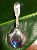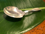 Bright William IV Sterling Silver Caddy Spoon by Joseph & William Savory. The bowl is a classic spade shaped with a fiddle-back handle.  This spoon has the traditional golden glow of English sterling silver and has a nice weight to it. This beautiful piece was crafted by brother silversmiths in London and shows their family skill.