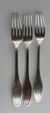 The forks are decorated with a simple neo-Classical design of laurel leaves inset to the edge of the handle, and to the center area of the handle. The knives are designed to look like floral bulbs at the handle's edge, terminating toward the shaft with a little rococo scallop shell.