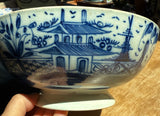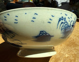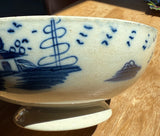 English Pearlware Underglaze Blue Painted Punch Bowl